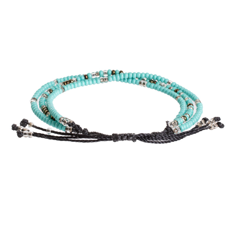 Delivery EstimateFor the World Peace Project, the Women Artisans of Santa Cruz created a stylish yet deeply symbolic bracelet, featuring three strands of serene aqua beads, which represent tiny crystalline globes. The beads are specifically strung to create a powerful message in Morse Code, spelling out "peace, love and hope," as three pillars of world peace, and the path to achieve it. "We designed this bracelet to inspire these three feelings as a constant reminder for the person who wears it," the Guatemalan artisans say.