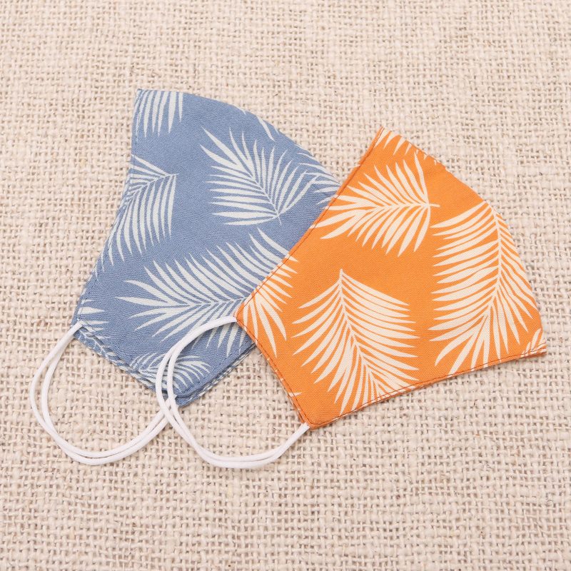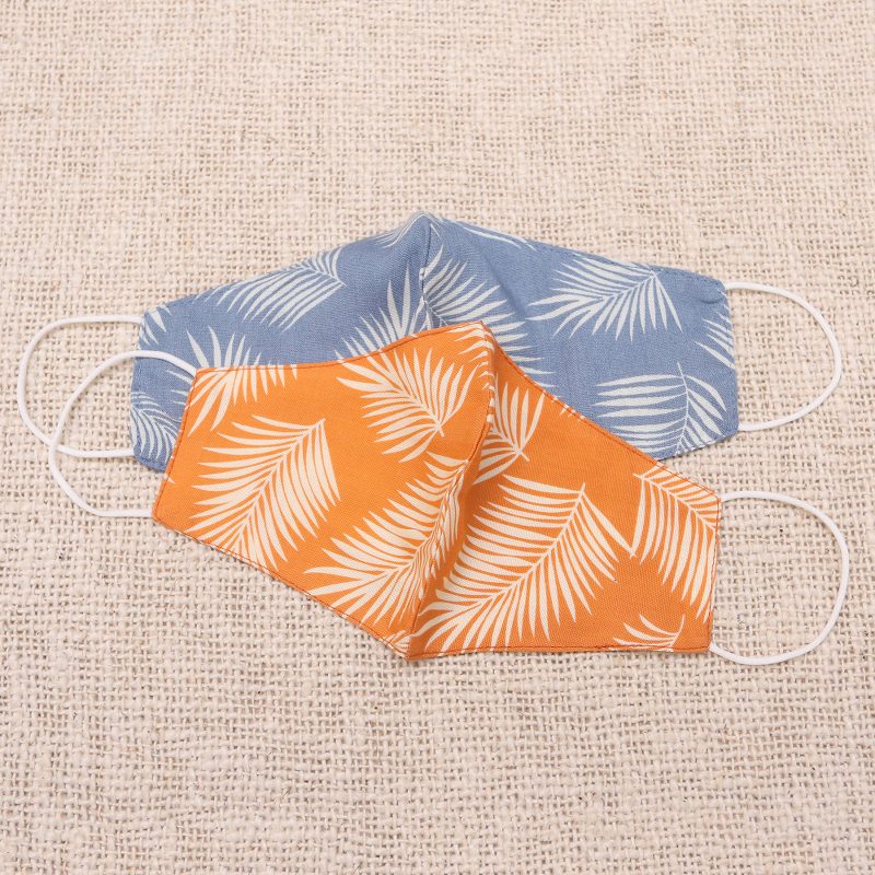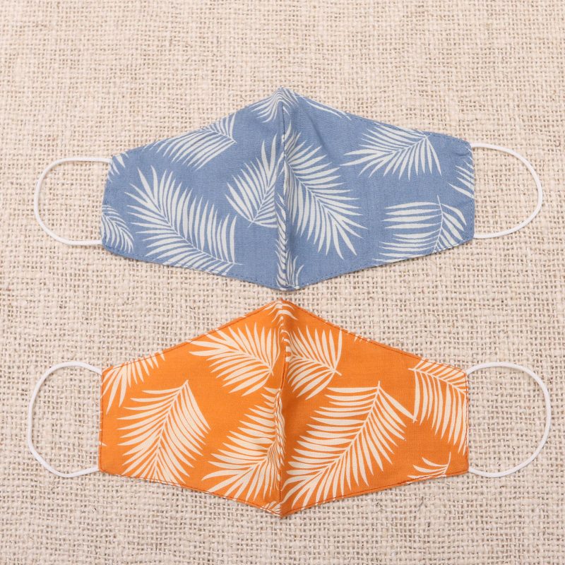 By Hari and Arthur, two rayon print face masks convey the beauty of the tropics. Both feature a fern print — one on Wedgwood blue and the other on sunrise orange. Contoured for comfort, both are double-layered, are washable and reusable, and have elastic to loop over the ears.