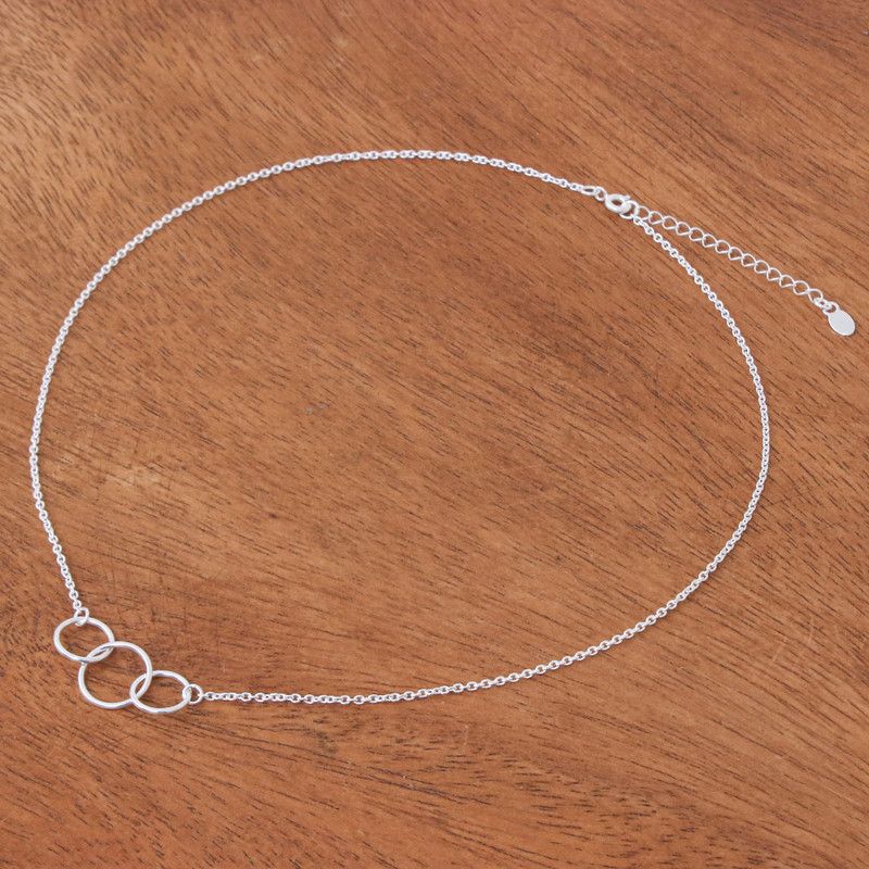 Abstrac forms hide a profound message in Pichaya's pendant necklace crafted in Thailand. Artisans of the region work with sterling silver to create the accessory, adding three polished hoops at the bottom, representing friendship and its impact on life.