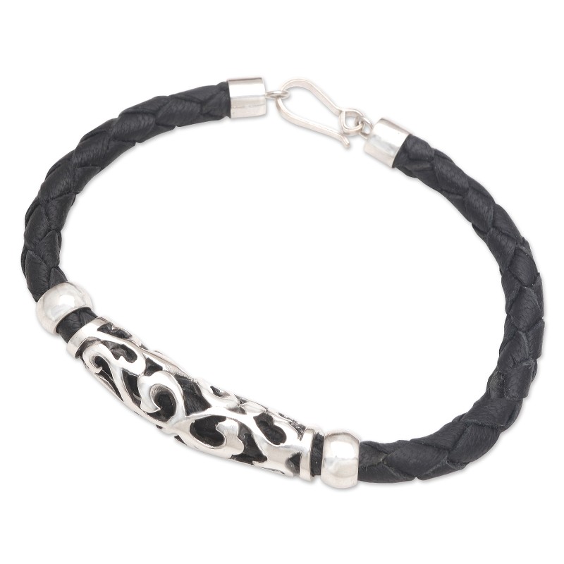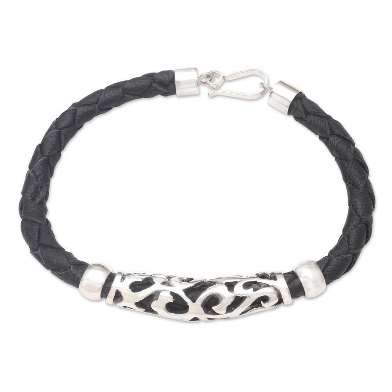 Black leather and shining silver create an elegant effect on Ita Puspita's unisex bracelet. Artisans in Bali centre the bracelet with an engraved sterling silver panel, braiding the remainder of the bracelet with strips of genuine leather. Choose between two size--one for men and one for women--for the best fit.