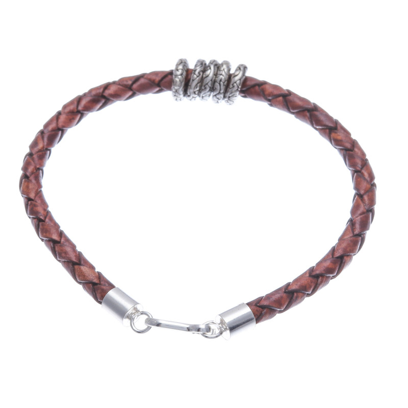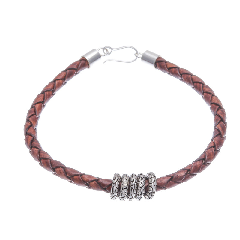 Backed by our 100% Happiness GuaranteeA brown leather braid forms a splendid design directly from Thailand. Crafted by master artisan Passaramon, this elegant bracelet features little sterling silver rings for a traditional and bohemian look, finishing in a handy stainless steel hook clasp that allows you to wear it in all its glory.