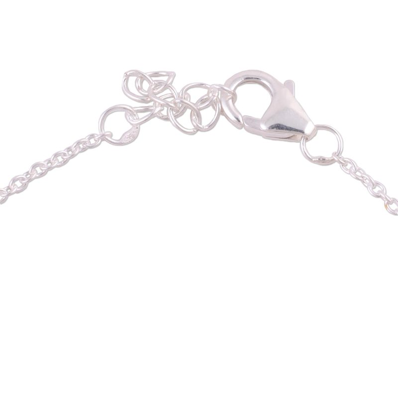 Delicate design with a very pretty chalcedony stone. Well made as well. Lobster clasp a plus.