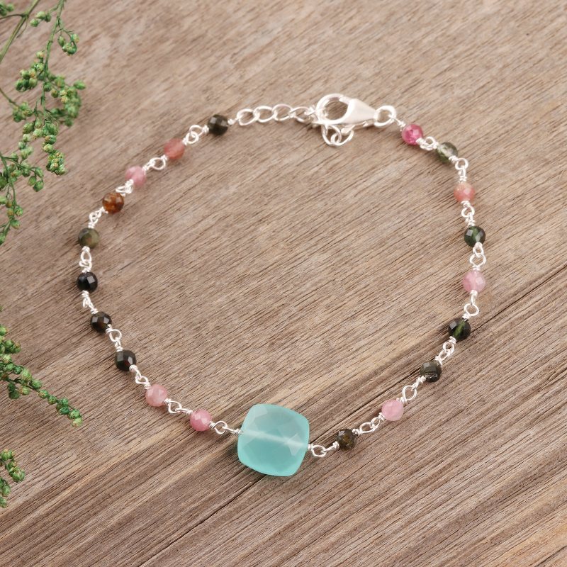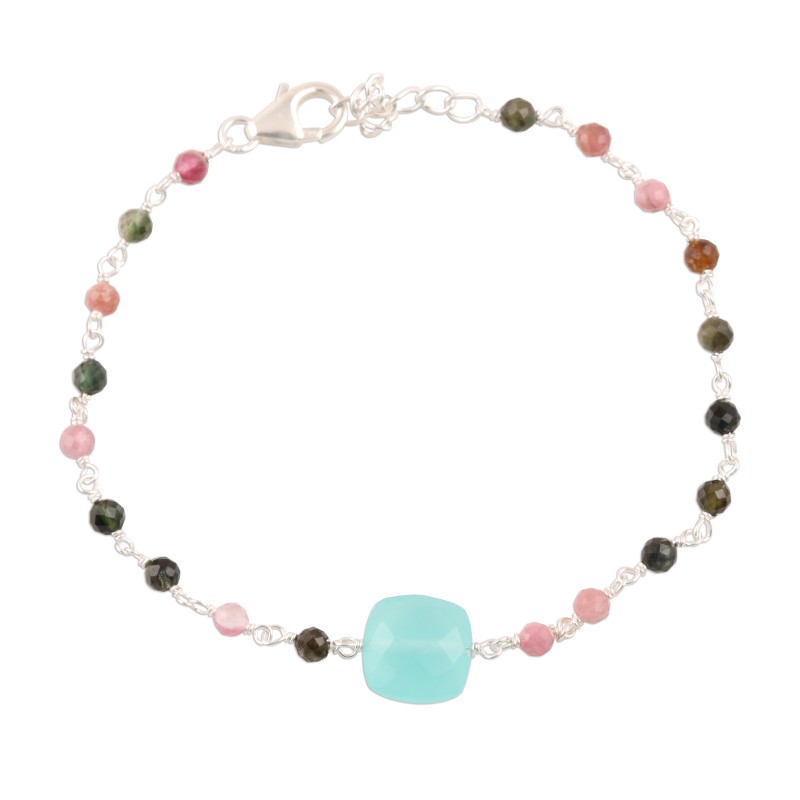 You can find our chalcedony and tourmaline pendant bracelet 'Colorful Combo' by Neetu Barathi in jewellery categories such as Gemstone Bracelets, Birthstone Bracelets, Tourmaline Bracelets, Chalcedony Bracelets and Silver Bracelets. Enjoy exploring these sections for other Novica treasures.