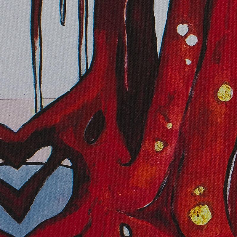 Naked and angular, an ancient trunk radiates passionate color. Trees were a favorite theme for Georg Rauch, who often traced their tangled roots beneath the twisted trunks and evocative branches. He gives life to the image that clings to a stony outcrop above the lake. The red roots glow with flecks of gold in this archival giclée print on canvas.