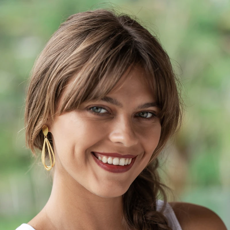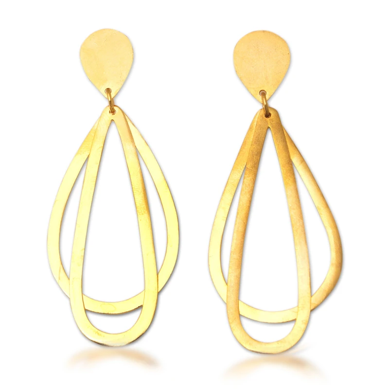 These earrings are gorgeous on. Not heavy, but have a substantial look. The two hanging teardrop loops on each earring move independently and the post area is very secure. Will be wearing these for the holiday season. Thank you Wayan!