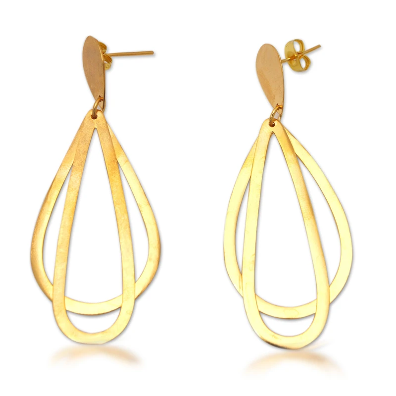These alluring dangle earrings boast an eye-catching contemporary design and a dynamic sense of movement that are sure to make a statement. Created by Bali's Wayan Karang, the earrings are crafted from 22k gold-plated brass with a polished finish that makes them the epitome of glamor and luxury.