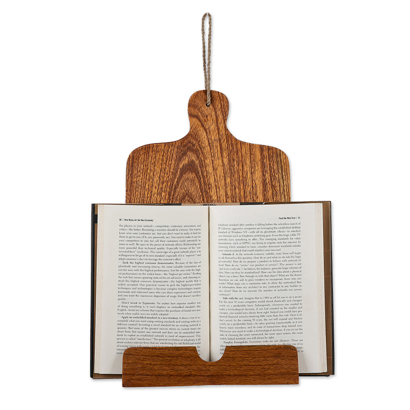 Get ready to cook those delicious meals you always wanted with Komang Sulaksana's handy creation. Directly from Bali, this jempinis wood recipe holder features a cute cutting board shape that adds a whimsical aura to this convenient kitchen accessory, ideal for helping you on those culinary challenges. Boasting a natural brown hue, the piece is equipped with a natural fiber cord for easy hanging.