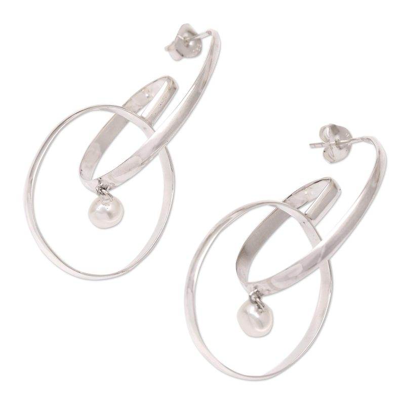 Backed by our Happiness GuaranteeBalinese silversmith Kadek Aridyah intertwines two hoops of sterling silver for a modern look with classic sensibility. Her delightful modern earrings are host pale peach cultured pearls, with the entire effect reminiscent of a G-clef.