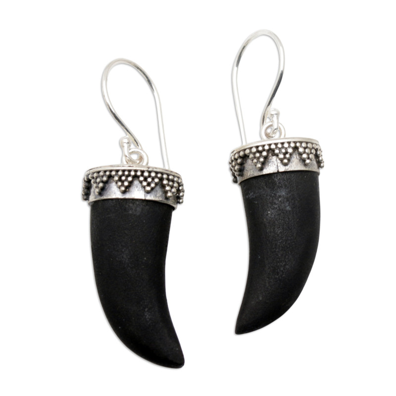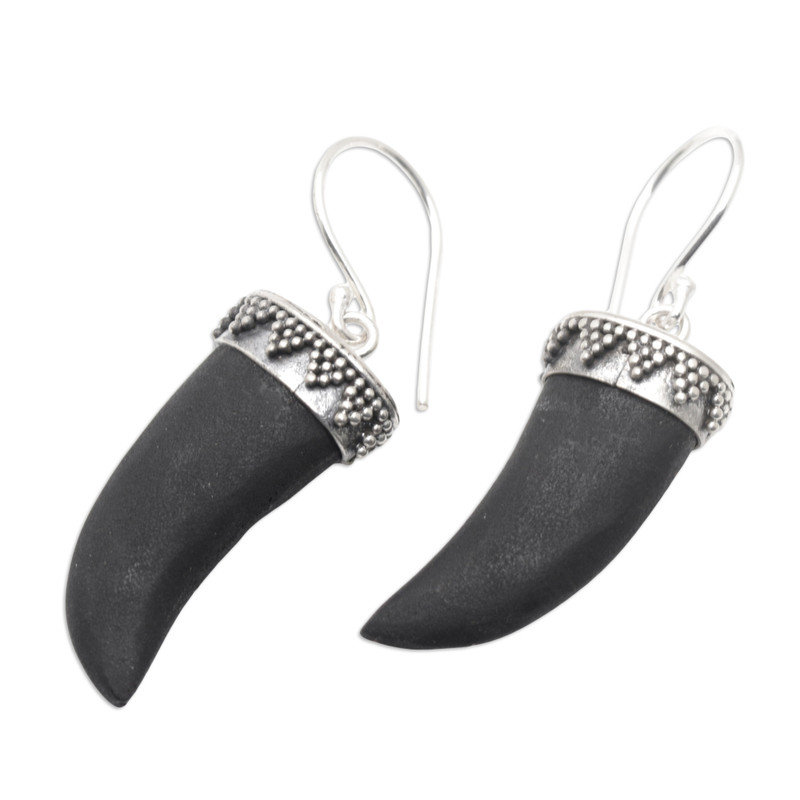 Dress your ears with the exotic allure of this pair of fang dangle earrings crafted from smooth lava stones. Designed by artisan Rupadana in Bali, the earrings feature sterling silver accents and hooks with a lovely combination finish.
