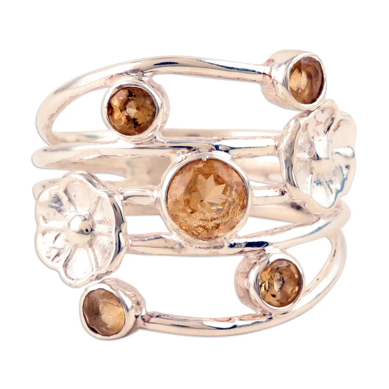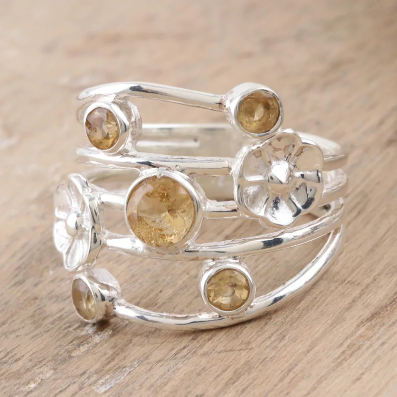 Backed by our 100% Happiness GuaranteeAlok Jain from India collabourates with local artisans to create a stunning accessory featuring citrine stones, known for attracting success and joy. Profiting from the fabulous yellow tone of the gems, this sterling silver cocktail ring also comes with little blooms, adding an enchanting touch to the item.