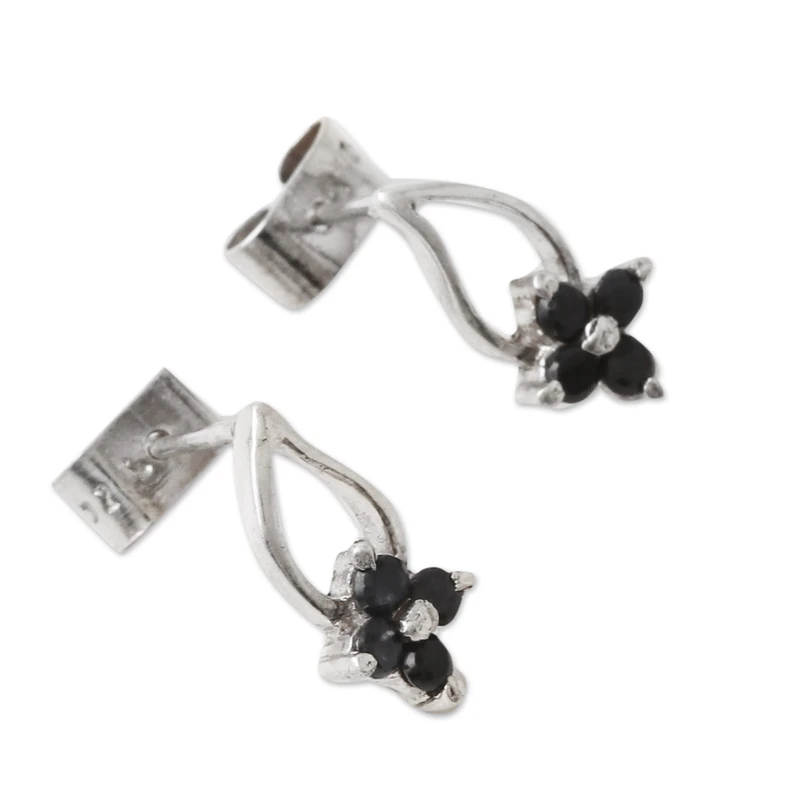 Alok Jain's drop earrings draw inspiration from nature and the blooming spring season, as their lovely design depicts a pair of flowers symbolizing beauty. Crafted from sterling silver in India, the accessory features sapphire stones, often associated with kindness and wisdom.