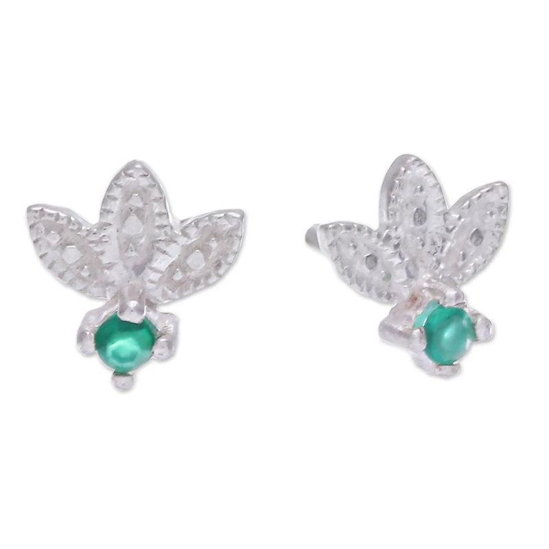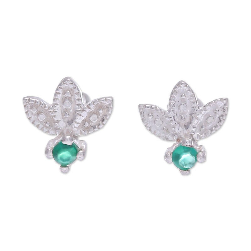 Backed by our 100% Happiness GuaranteeCrowned with floral motifs as a symbol of elegance, Wadarat Supasirisuk's sterling silver stud earrings exude art and majesty in every detail. Directly from Thailand, the accessory features a polished finish that enriches the green light coming from two faceted chalcedony gems set at the bottom, both strongly associated with royalty.