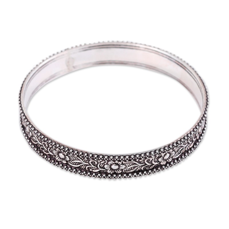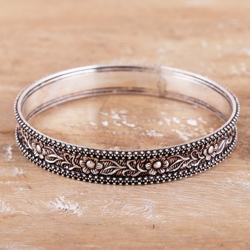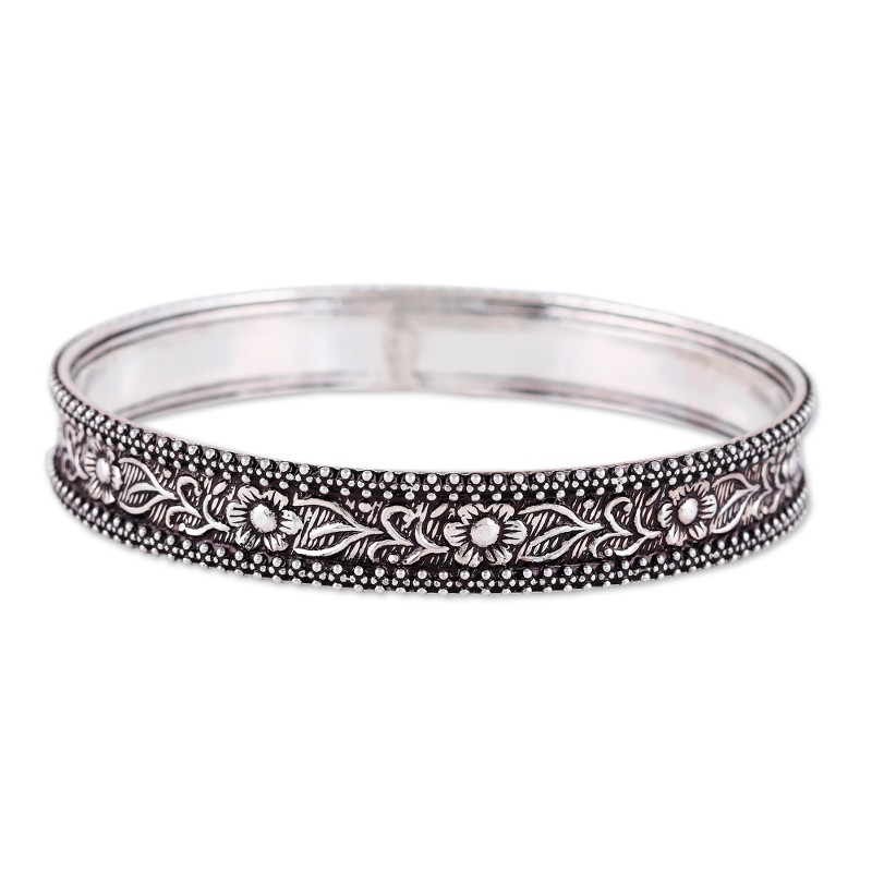 You can find our sterling silver bangle bracelet 'Flourishing Beauty' by Bhavya Jain in jewellery categories such as Floral Bracelets, Leaf and Tree Bracelets, No Stone Bracelets, Silver Bracelets and Sterling Silver Bracelets. Enjoy exploring these sections for other Novica treasures.