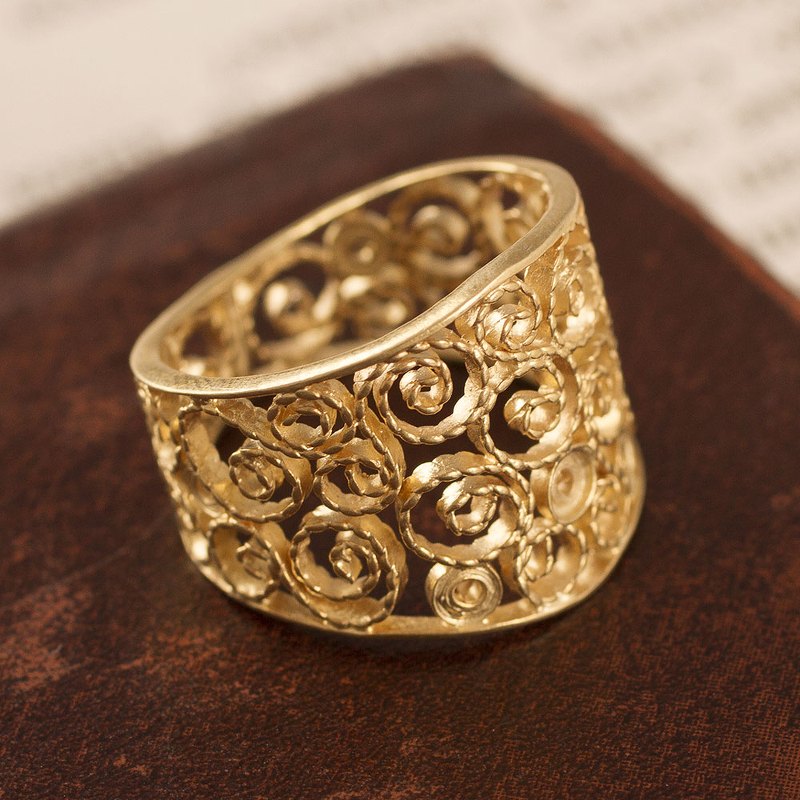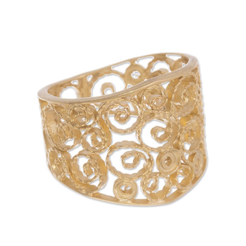 You can find our gold plated sterling silver filigree band ring 'Colonial Swirl' by Giuliana Valz-Gen in jewellery categories such as No Stone Rings, Gold Rings, Gold Plated Rings, Silver Rings and Sterling Silver Rings. Enjoy exploring these sections for other Novica treasures.