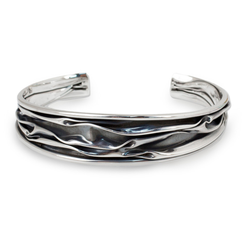 Backed by our 100% Happiness GuaranteeWaves of silver recall the hypnotic energy of a flowing river in a bracelet from Thailand's Achara. The cuff bracelet is crafted of sterling silver featuring a dark, oxidized background.