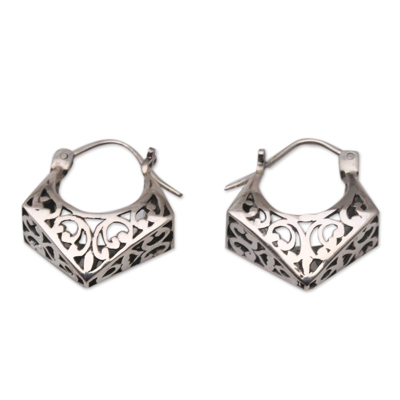 Presented by Sukartini, these breathtaking silver earrings are a cool twist on the classic hoop earring. Balinese artisan hand craft the earrings from sterling silver, engraving the precious metal with curling openwork designs that shine with a polished finish.