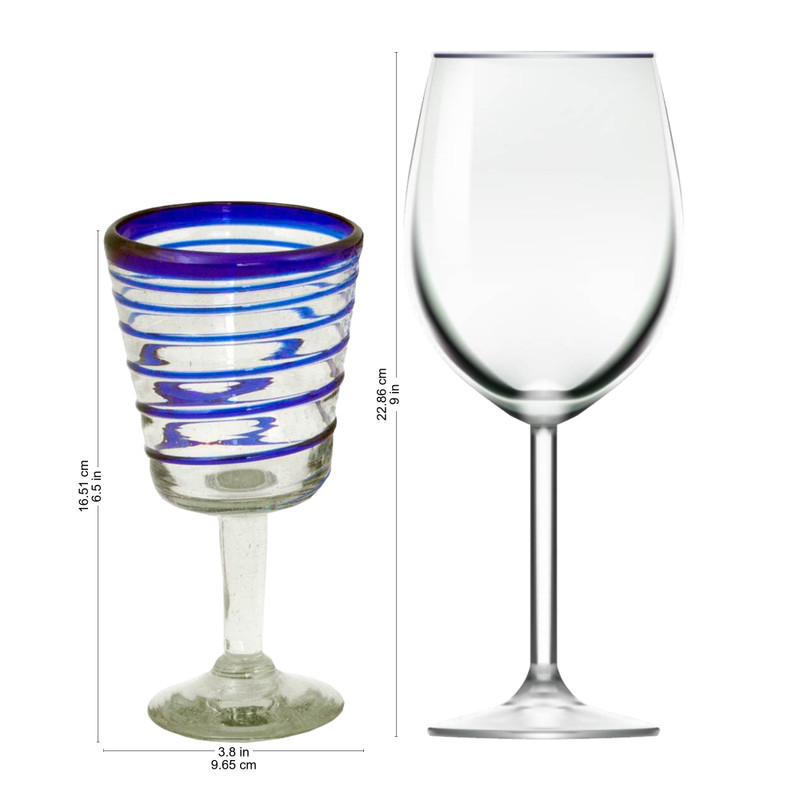 Swirls of cobalt blue spin unrestrained lending their grace to embellish these wine glasses by Javier and Efrén. A testimony to Mexico's blown glass tradition, the design glows with contemporary chic.