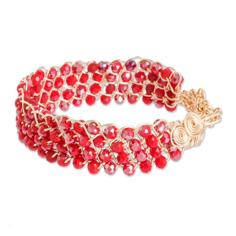 Backed by our 100% Happiness GuaranteeCosta Rican artisan Marice Nuñez works with polymer-coated copper wires to create a fashionable accessory. With red crystal beads embellishing the whole design, this bracelet also features multiple strands for a bold style.