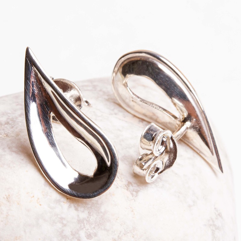These simple yet elegant drop earrings are the original design of Ezequiel Tapia in Mexico. He crafts the teardrop-shaped earrings from Taxco sterling silver with a bright, polished finish.