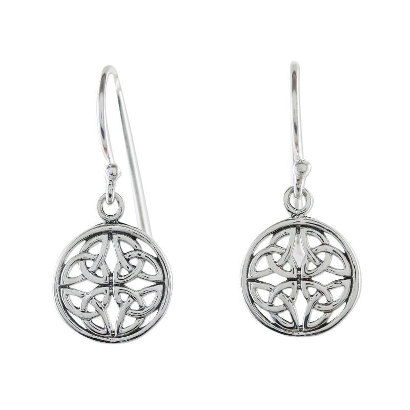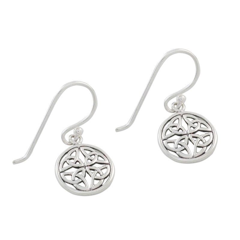 A labyrinth of interconnected shapes -- joined arcs arranged to form a circle -- make for an elegant and fascinating pair of earrings. Thai artisan Lalana handcrafts these lovely dangle earrings made of sterling silver.
