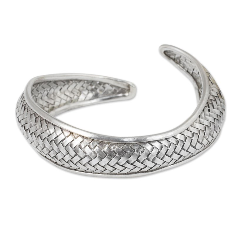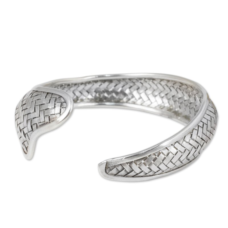 Karen hill tribe artisans ingeniously weave silver to resemble the scales on a fish for this bracelet. Proudly presented by Achara, the cuff is crafted by hand in Thailand.