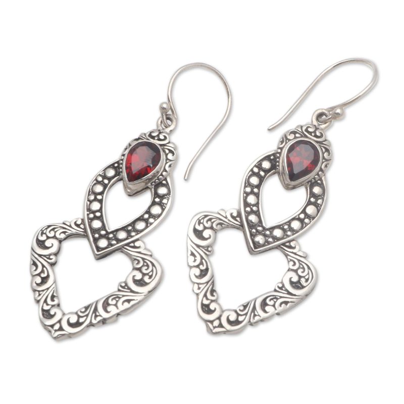 You can find our garnet dangle earrings 'Hearts of Waves' by Kadek Hendra in jewellery categories such as Birthstone Earrings, Gemstone Earrings, Heart Earrings, Garnet Earrings and Silver Earrings. Enjoy exploring these sections for other Novica treasures.