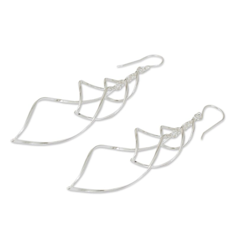 Triple helixes crafted from polished silver are linked forever in earrings with contemporary flair. Pichaya in Thailand crafts the pair from sterling silver and places them on silver hooks.