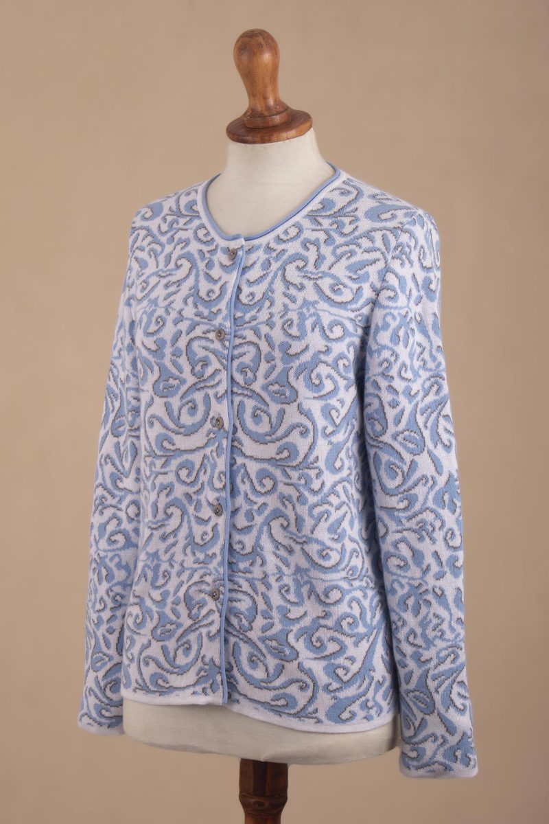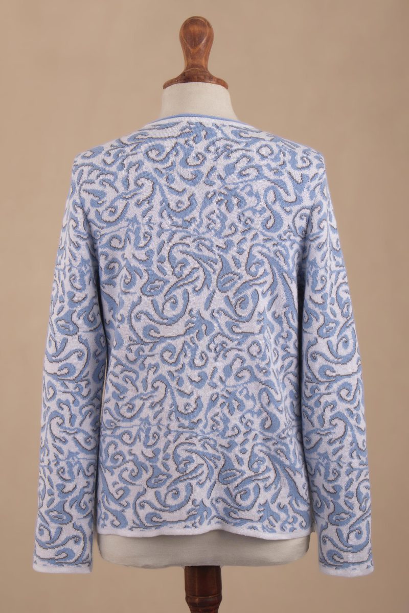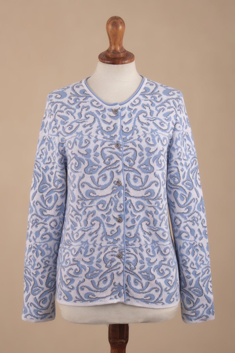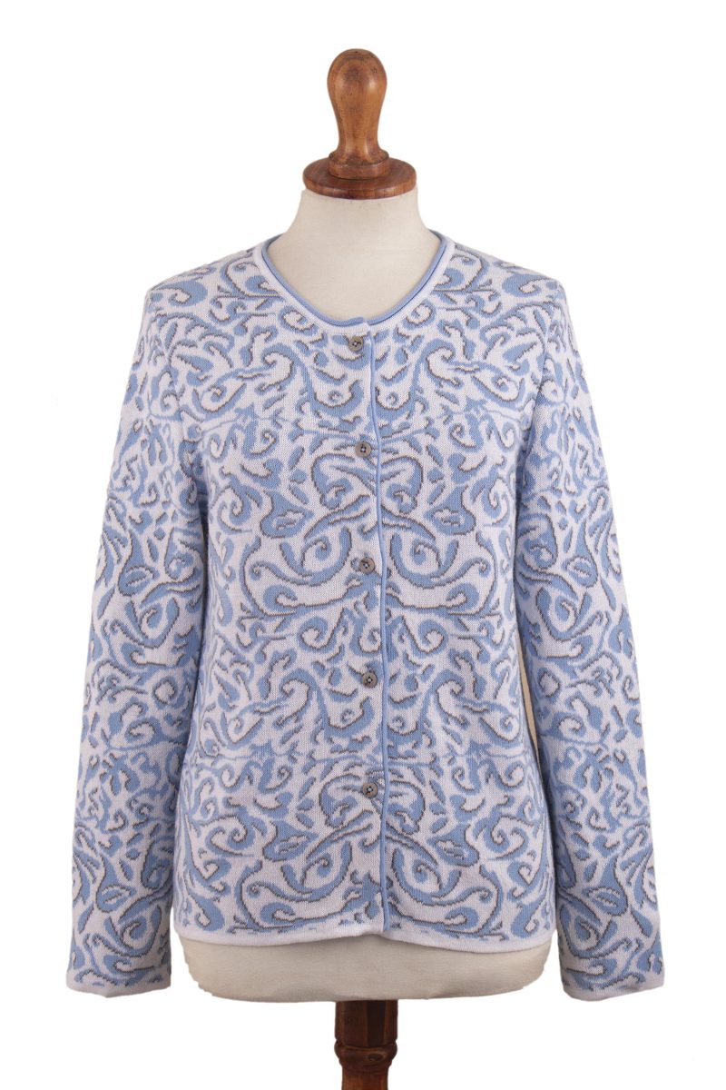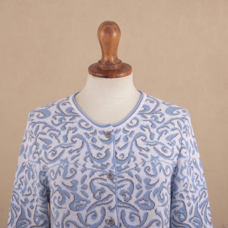 You can find our cotton cardigan 'Frida in Cerulean' by Patricia Lopez in clothing categories such as Floral Sweaters, Cotton Sweaters and Cardigans Sweaters. Enjoy exploring these sections for other Novica treasures.