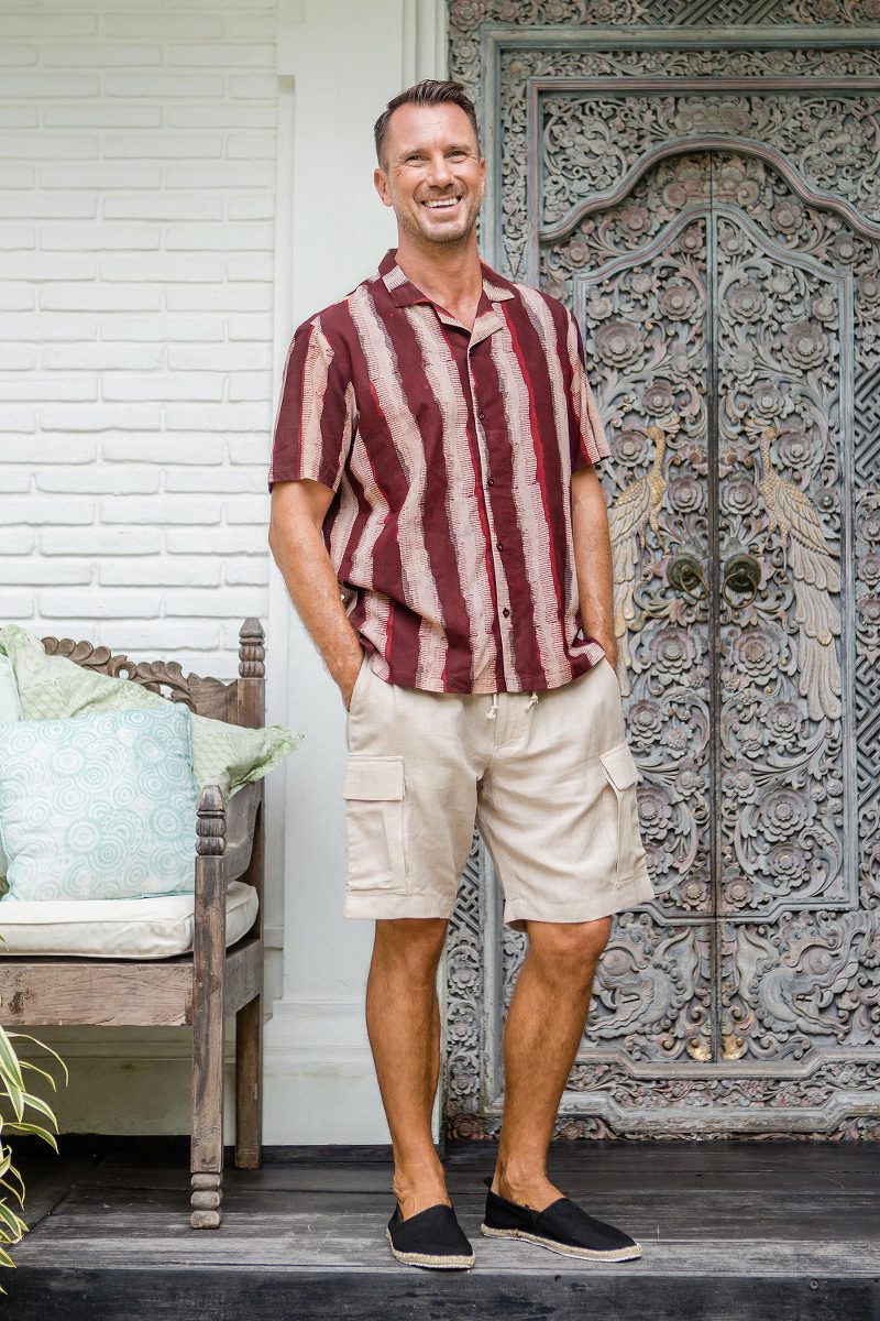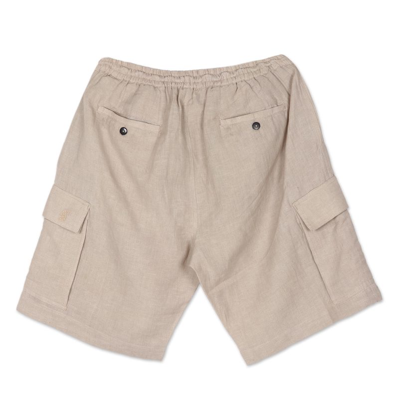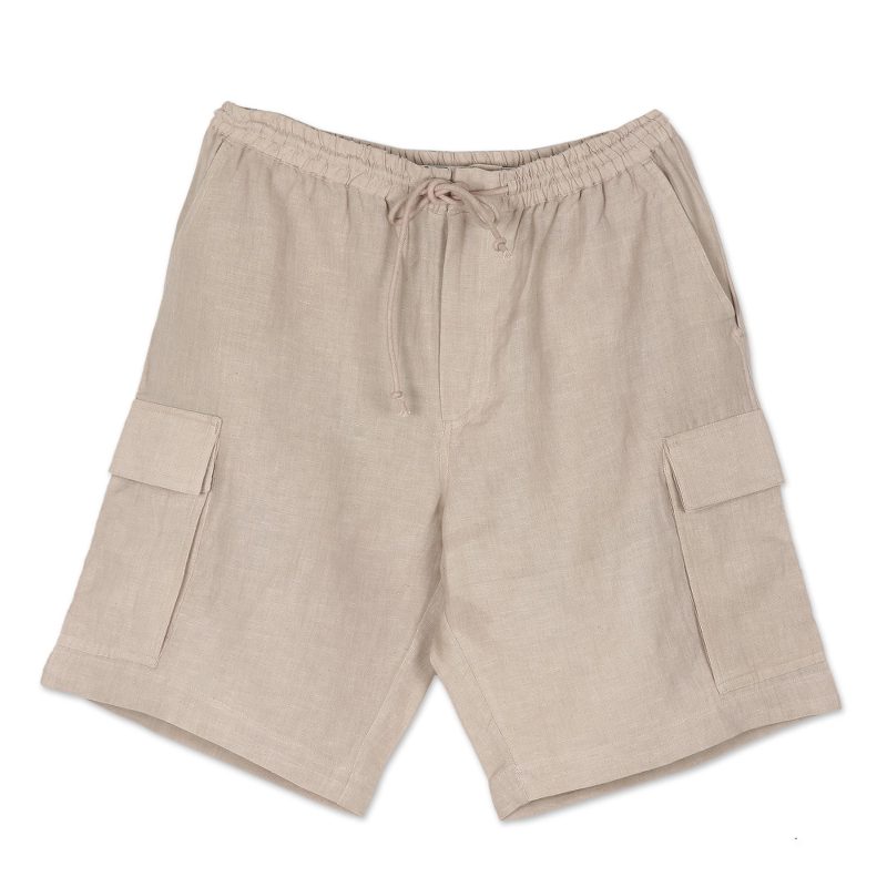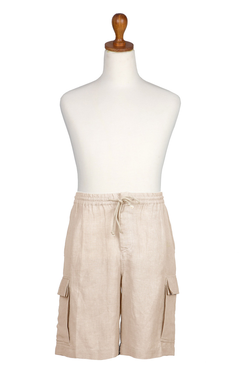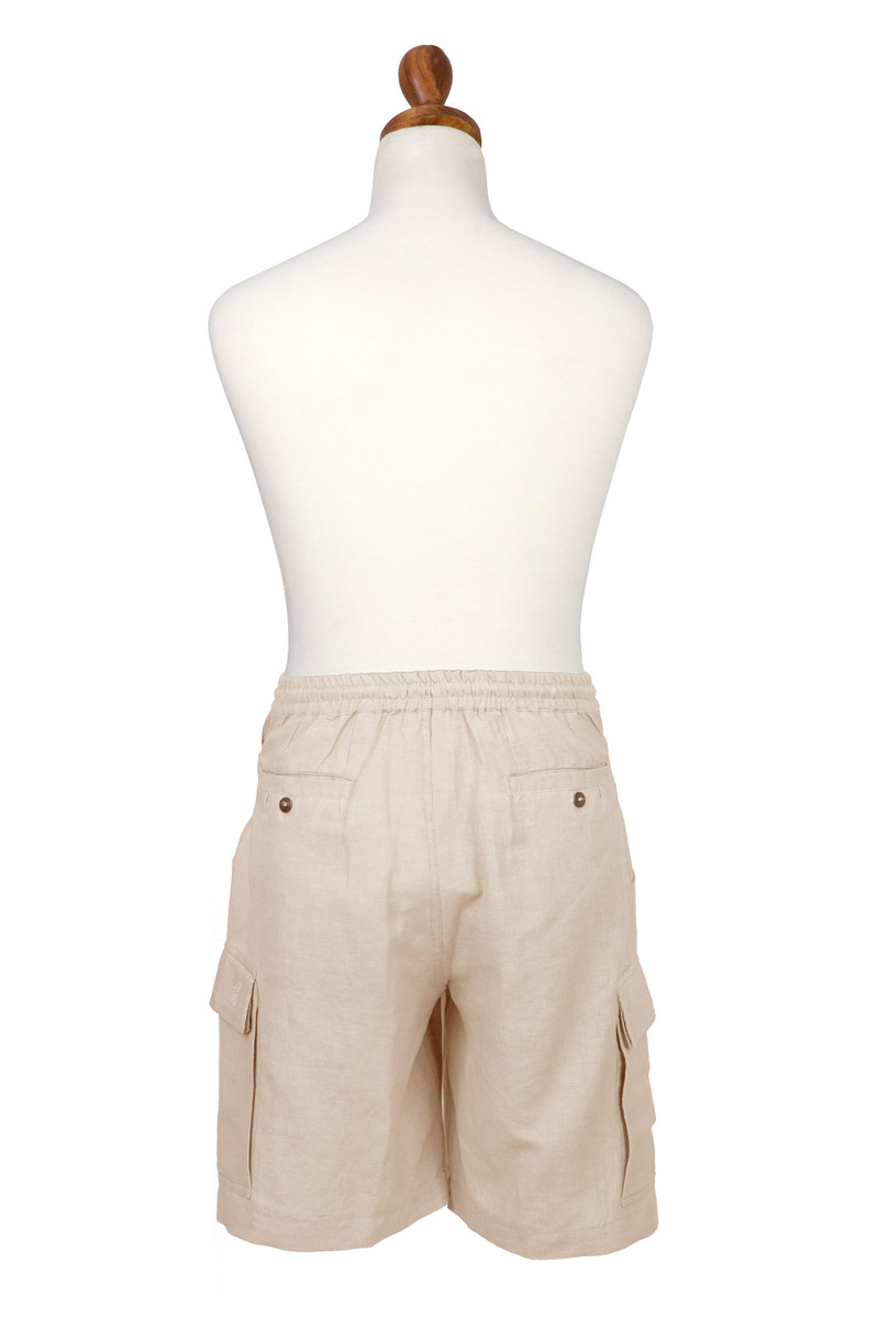 When the weather warms up, reach for these comfy and stylish cargo shorts for your outdoor events. With an elastic waist and adjustable drawstring, the linen and cotton blend shorts feature two cargo pockets, side seam pockets and welt back pockets with a button closure.