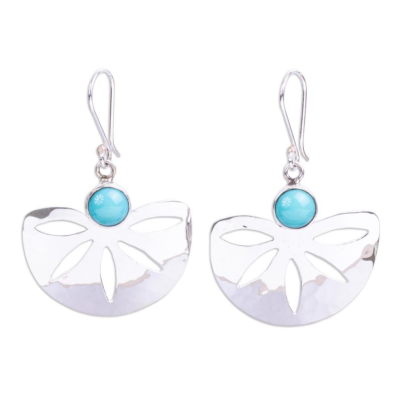 Sleek sterling half-discs come to life in Mexico's precious Taxco silver. Evoking modern blossoms or perhaps sand dollars, they are crowned with serenely blue natural turquoise. These earrings by Roy Nilson add a touch of elegance to everything.