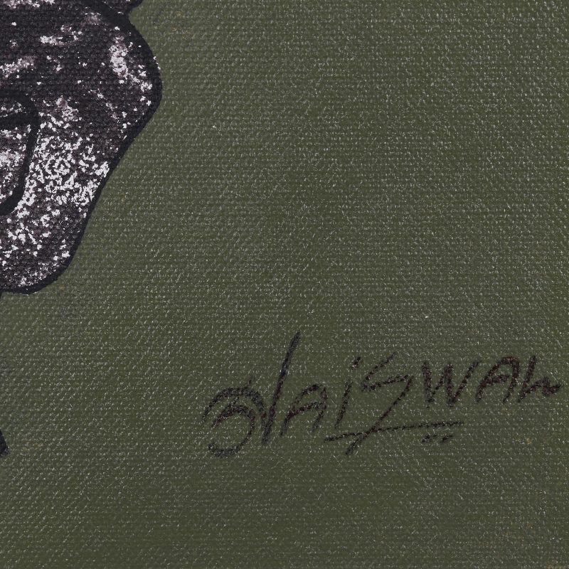 Backed by our 100% Happiness GuaranteePlaying with the contrast between solids and patterns, Sunil Jaiswal creates this striking bull-themed painting in deep, mossy green and mottled grey. The Indian artisan starts with a solid background, outlining the bull in bold black for an eye-popping impression.