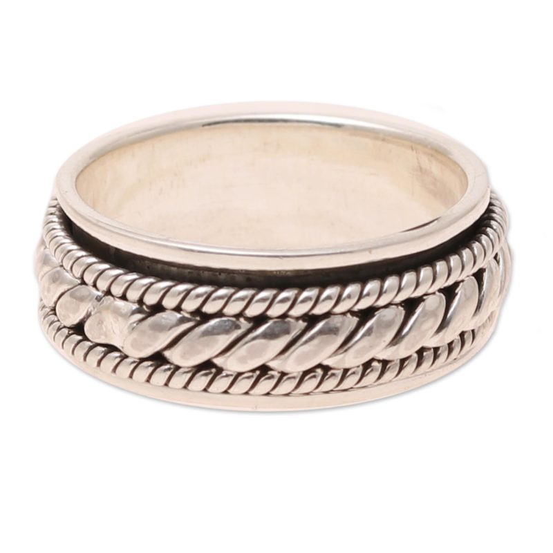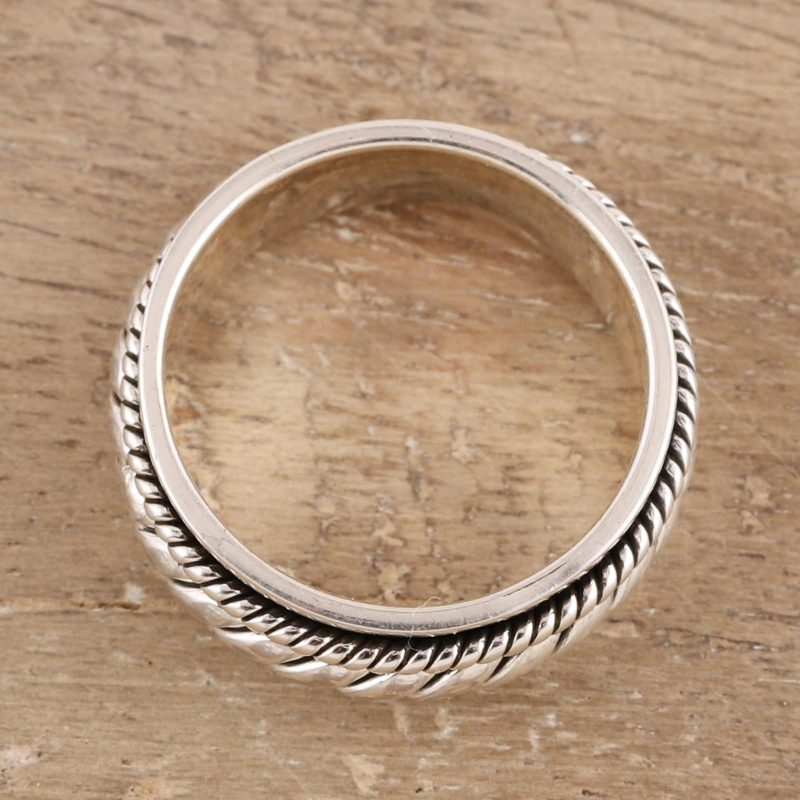Shiny Rope Rope Pattern Sterling Silver Spinner Ring from India