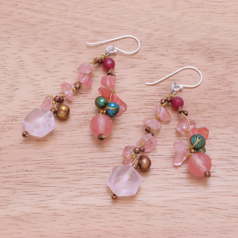 You can find our multi-gemstone dangle earrings 'Translucent Rose' by Nareerat in jewellery categories such as Birthstone Earrings, Gemstone Earrings, Rose Quartz Earrings, PEARL Freshwater Earrings and Quartz Earrings. Enjoy exploring these sections for other Novica treasures.