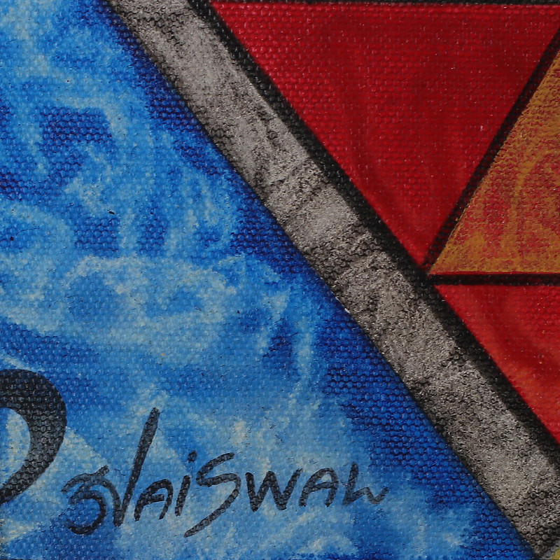 Backed by our 100% Happiness GuaranteeThe death of his beloved Sita transformed Shiva into the ferocious Virabhadra, a spirit born from sadness and wrath. Made as a reminder of how emotions transform people, Indian artist Sunil Jaiswal portrays the serene side of this fiery soul in this expressionist composition made with acrylic hues.