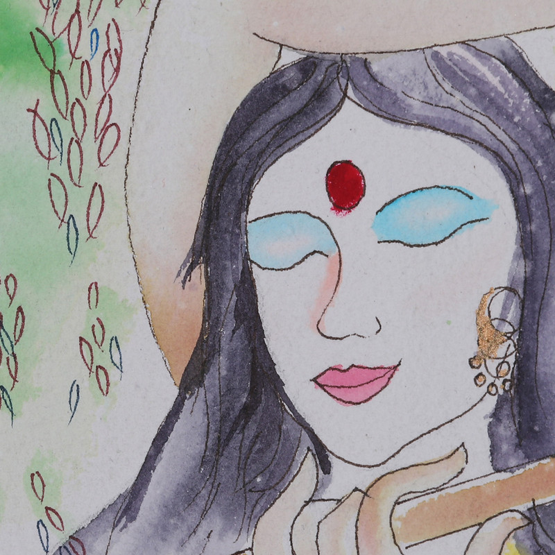 Music, nature and wisdom unite to represent the harmonious coexistence between every being on this wondrous planet. India's Pooja Kathuria uses watercolour and acrylic in a palette of green and yellow hues to portray a glimpse of Earth's sacred balance—all condensed in this expressionist painting of captivating elements.