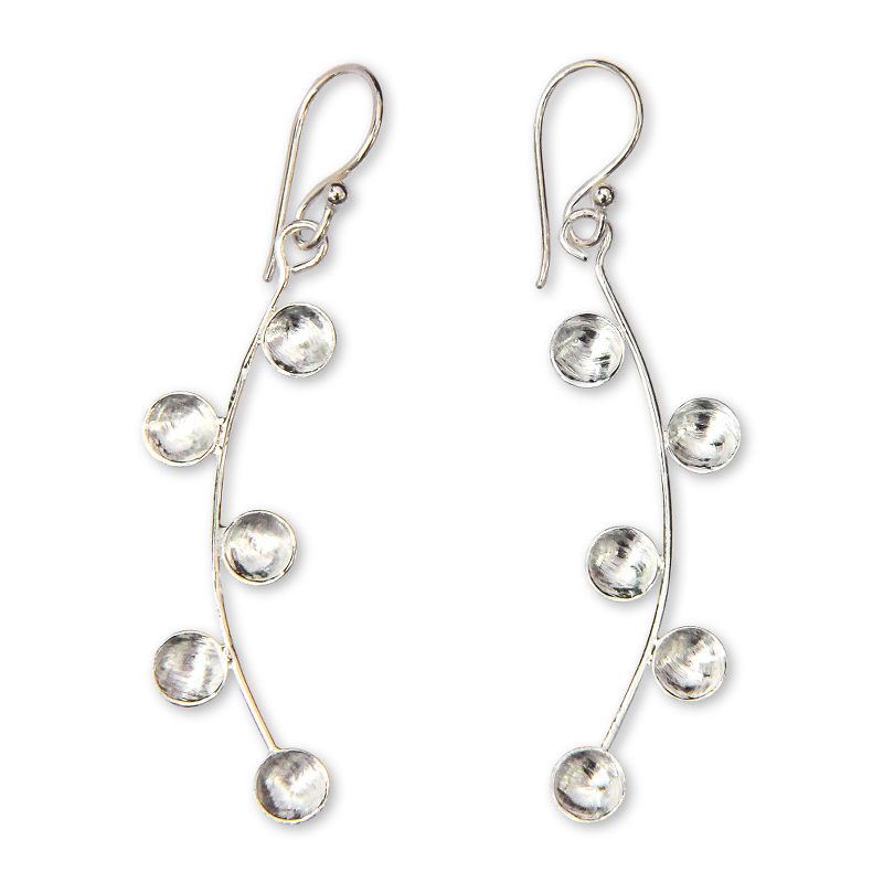 Little drops of rain bathe these earrings with refreshing elegance. Bali's Desi Antari crafts the polished sterling silver earrings by hand, featuring concave patterns with a brushed satin finish.