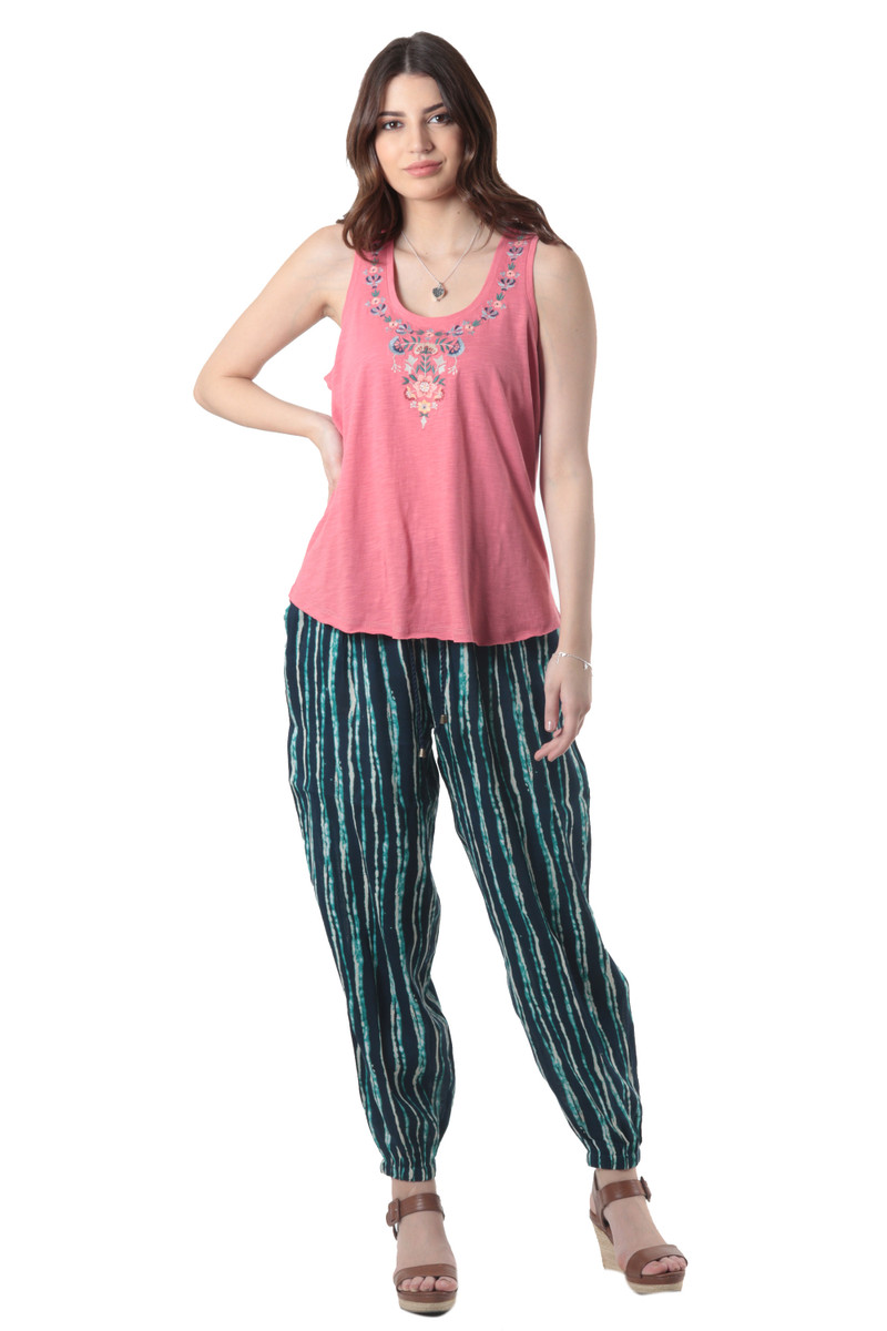 Backed by our 100% Happiness GuaranteePerfect for errands or comfy days around the house, Anchal Ahuja' striped pants are a stylish way to lounge. Indian artisans tie-dye soft viscose fabric to create the striped pattern, crafting the pants with an elastic waist, cotton drawstring, and a slit pocket on either side.