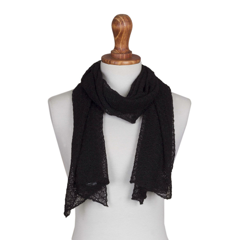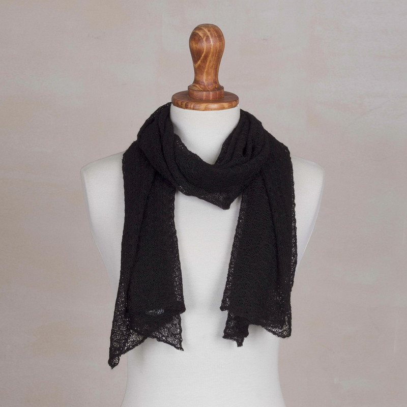 You can find our 100% baby alpaca scarf 'Wavy Texture in Black' by Alfredo Falcon in accessories categories such as Alpaca Wool Scarves and Wrap Scarves. Enjoy exploring these sections for other Novica treasures.