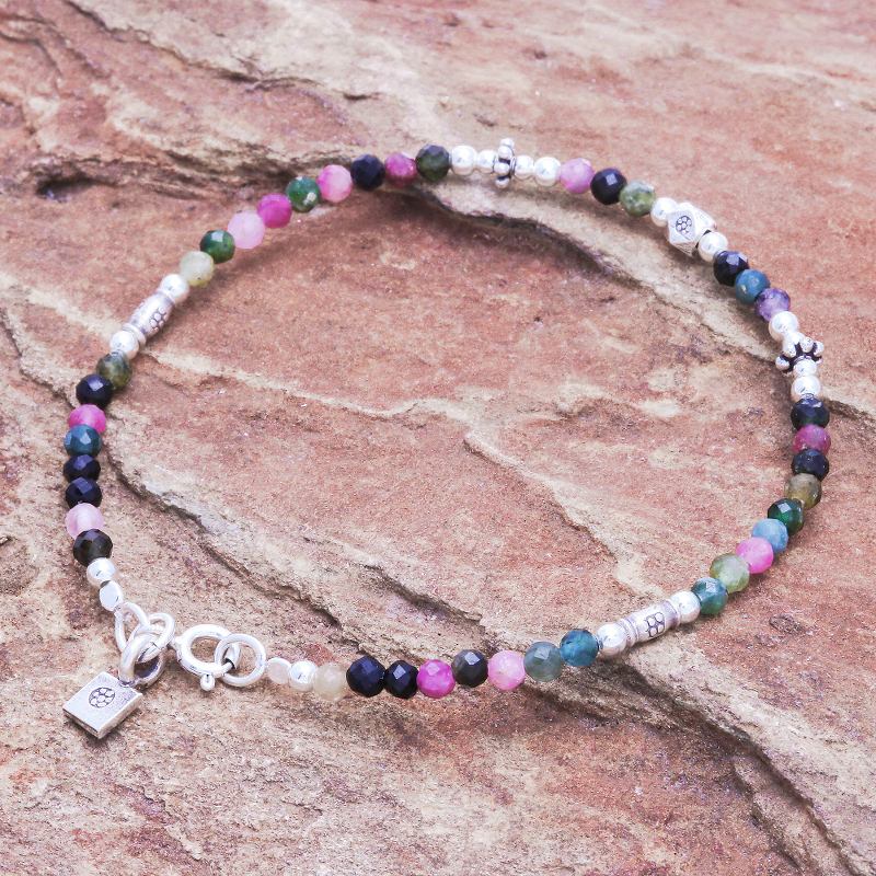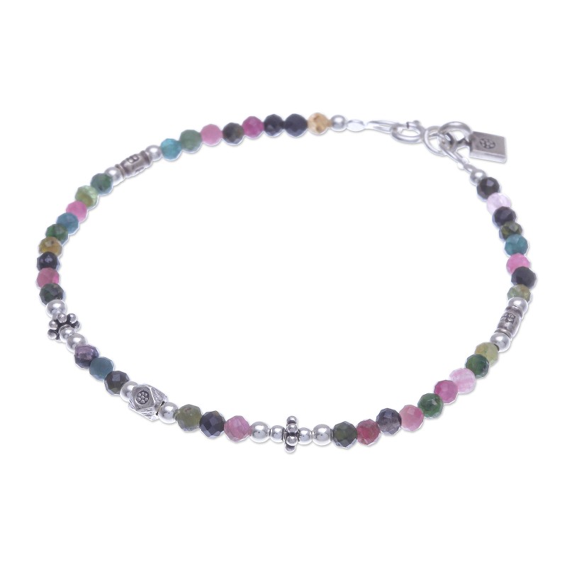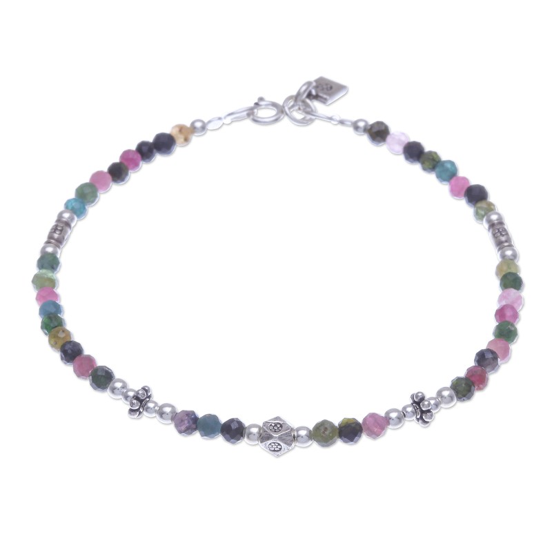 The bright, multicolored beads on Siranya's charming bracelet are sure to make it your new favorite accessory. From her workshop in Thailand, the artisan hand threads faceted tourmaline gems together to create the strand, while stamped 950 silver beads and sterling silver orbs add glimmering shine.