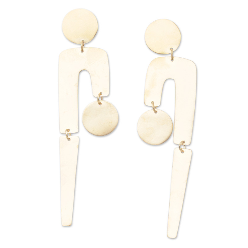 Backed by our 100% Happiness GuaranteeA modern and abstract motif and a high polish finish are what makes Wayan Karang's design stand out. Hand-crafted in Indonesia from 22k gold-plated brass, this sensational pair of dangle earrings are simply the kind of fashion accessories that will never go under the radar.