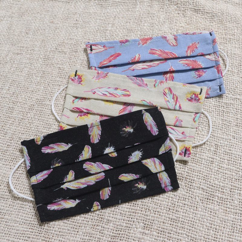 Novica artisans evoke the lightness and freedom of a feather drifting in the wind. Using these motifs in three color combinations, they craft this set of three single-layer cotton face masks with three pleats for comfort. They are washable and reusable, and feature elastic to loop over the ears.