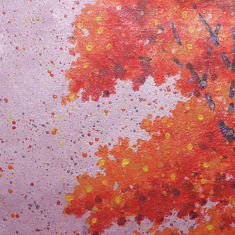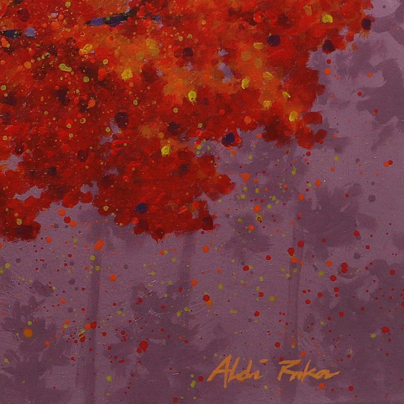 Javanese artist Aldi uses purple and orange to create the eye-popping colour combination on this richly hued acrylic painting. Greyed lilac creates depth by fading into the background, while vibrant orange foliage become the unmissable focal point.