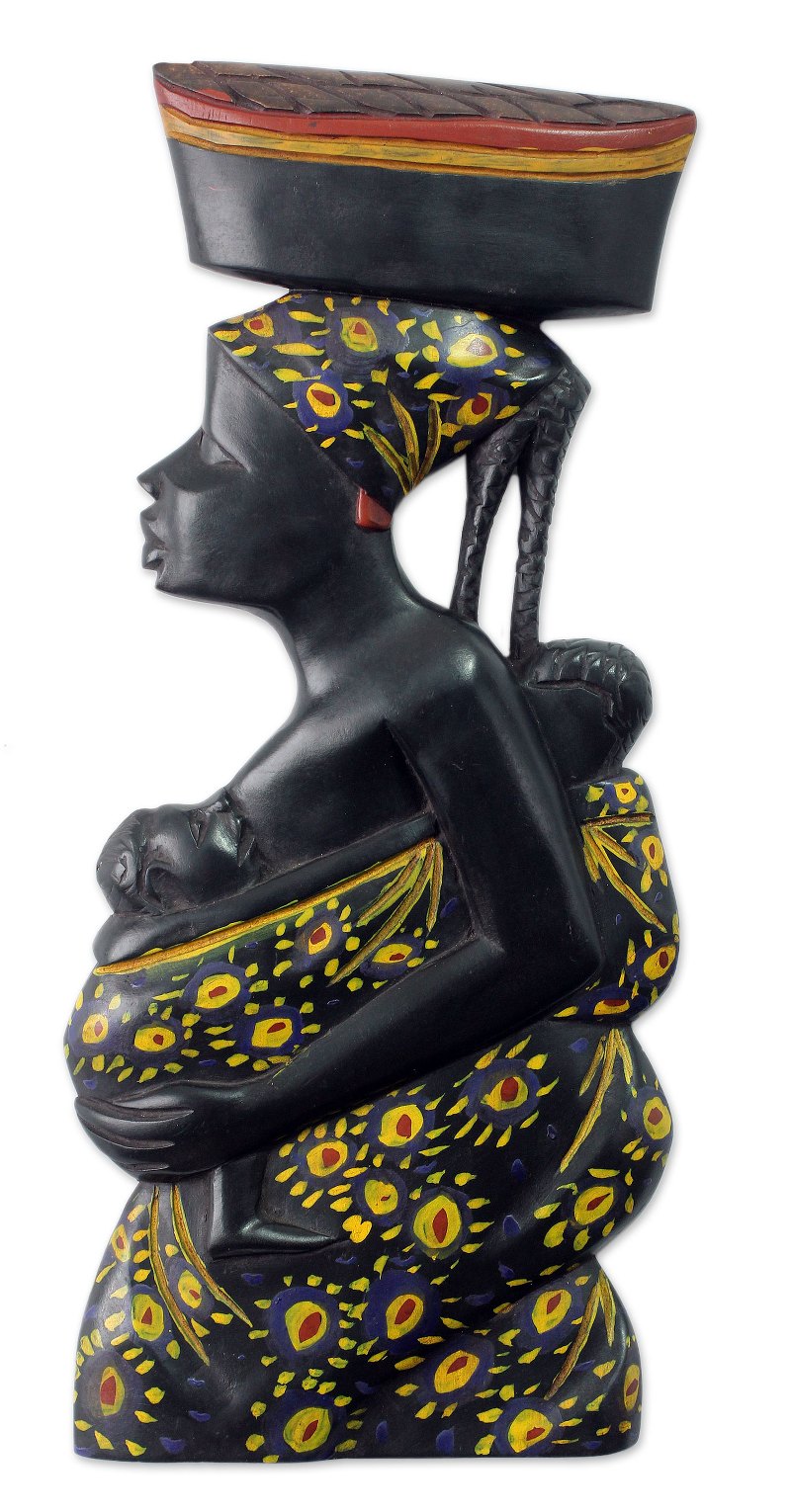 Backed by our 100% Happiness GuaranteeSeen in profile, a young Ghanaian woman wears a batik sarong and a matching scarf. She carries her toddler on her back and nurses a younger child while walking toward the market and balancing a basket on her head. Evelyn Kafui Ahianyo designs a lovely wall sculpture she names Ayeyie, a Twi word meaning "appreciation."