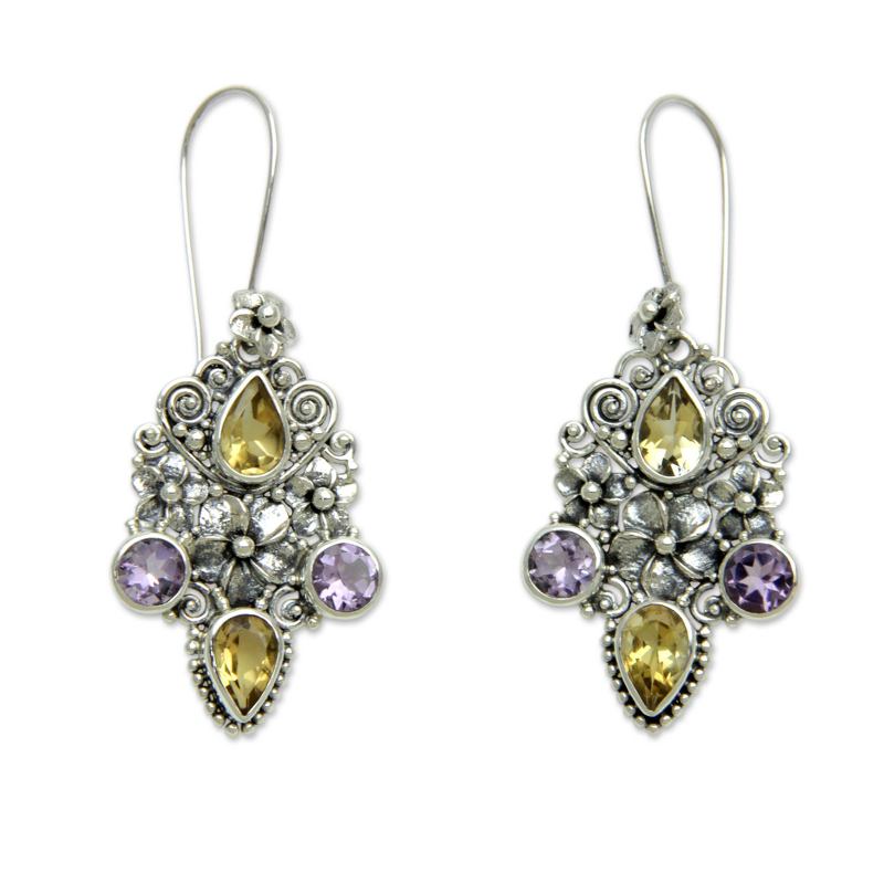 You can find our citrine and amethyst dangle earrings 'Secret Garden' by Buana in jewelry categories such as Balinese Traditional Silver Earrings, Citrine Earrings, Sterling Silver Earrings and Dangle Earrings. Enjoy exploring these sections for other Novica treasures.