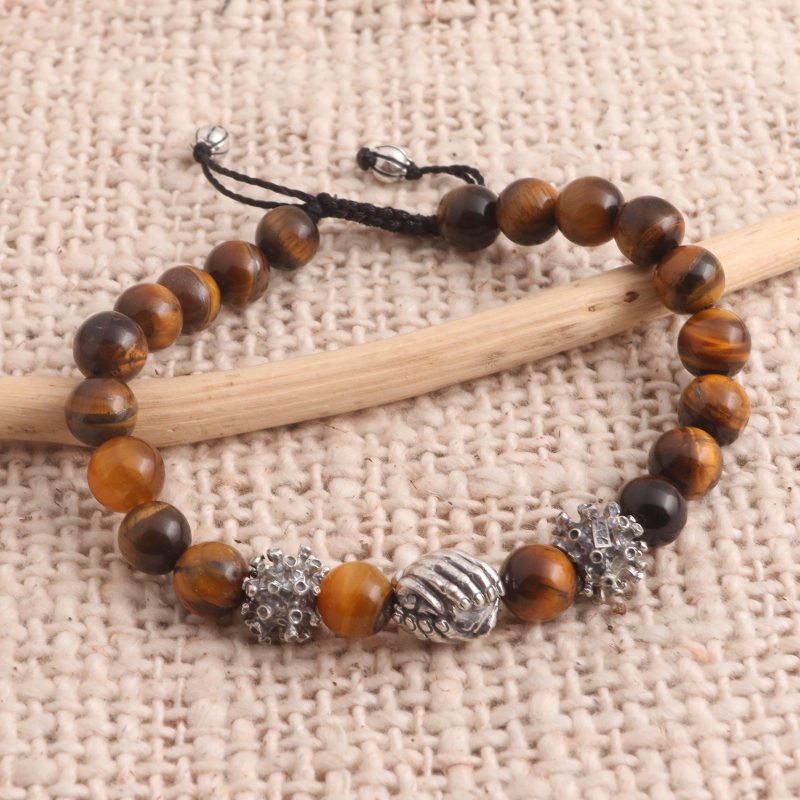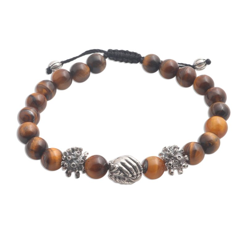 Backed by our 100% Happiness GuaranteeDewa Arimbawa crafts a beaded tiger's eye bracelet with a message of encouragement. His original design carries images of unity in the sterling silver beads. Two depict the corona virus, as illustrated by the Center for Disease Control. The central bead offers a solution, as helping hands come together in friendship and unity.