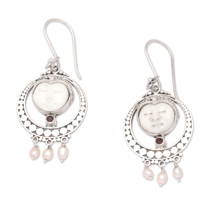 Backed by our 100% Happiness GuaranteeThe enchanting Balinese island blesses your ensembles with a majestic creation made with advanced techniques by Buana, a talented artisan expert in classic jewellery. Combining sterling silver and cow bone, the artisan creates these magnificent dangle earrings in a polished finish, decorated with cultured pearls—representing the region's oceanic richness—and natural garnet jewels, known for being amulets of passion.