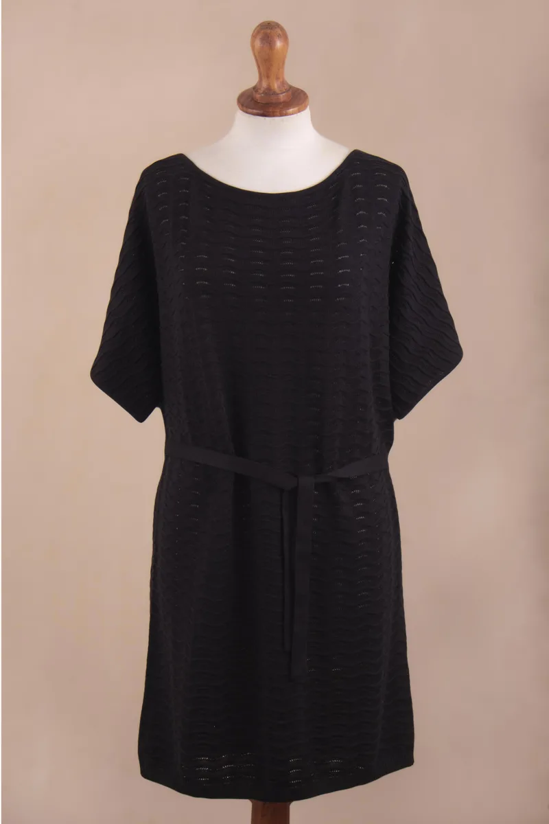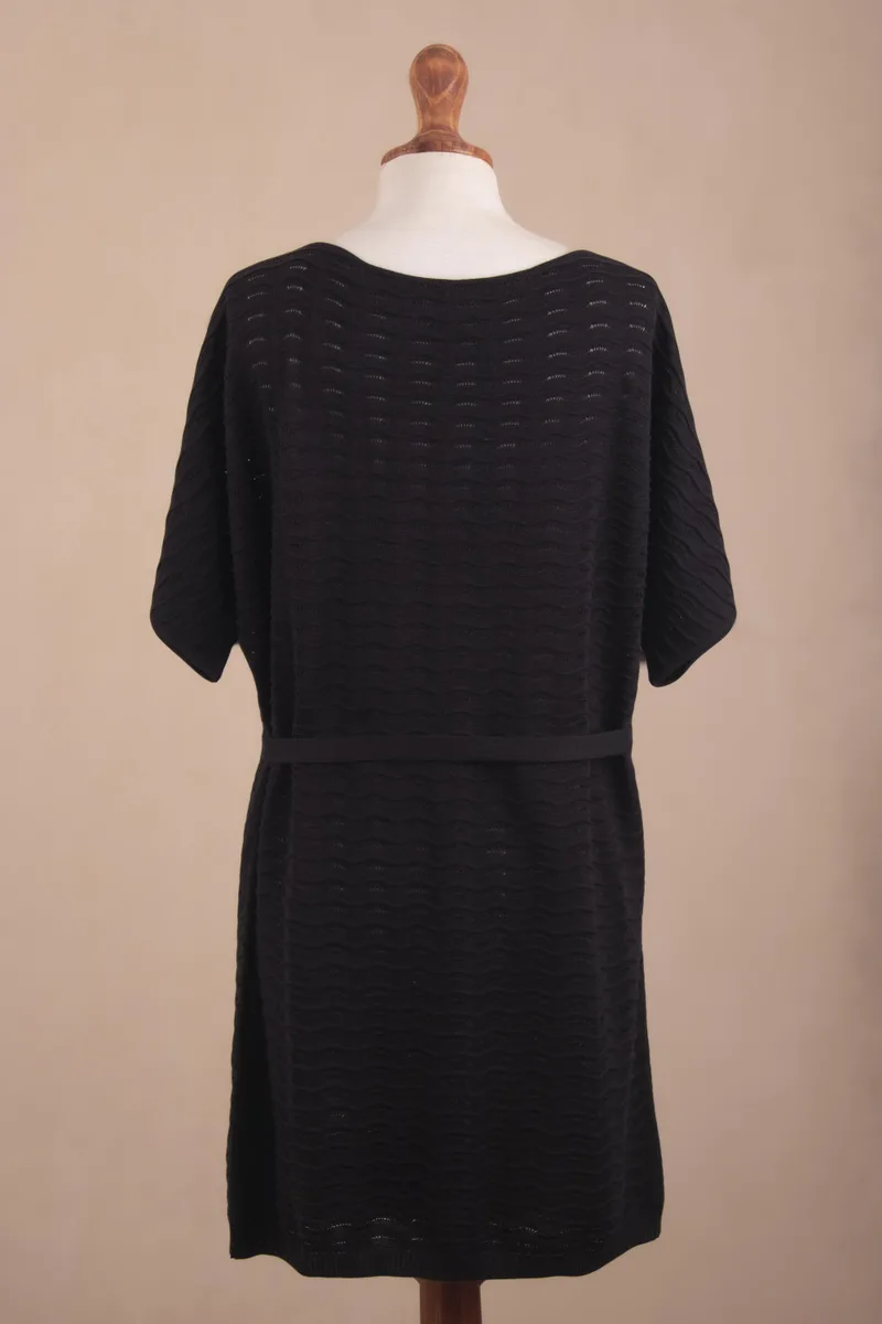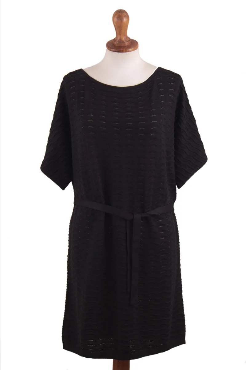 Say hello to your new favorite knit dress! Daphne Scapa designs this versatile black frock from a 100% USDA and GOTS-certified organic pima cotton. She adds a removable waist tie for multiple wearing options. Dress it up with some strappy sandals or dress it down with a pair of white sneakers.