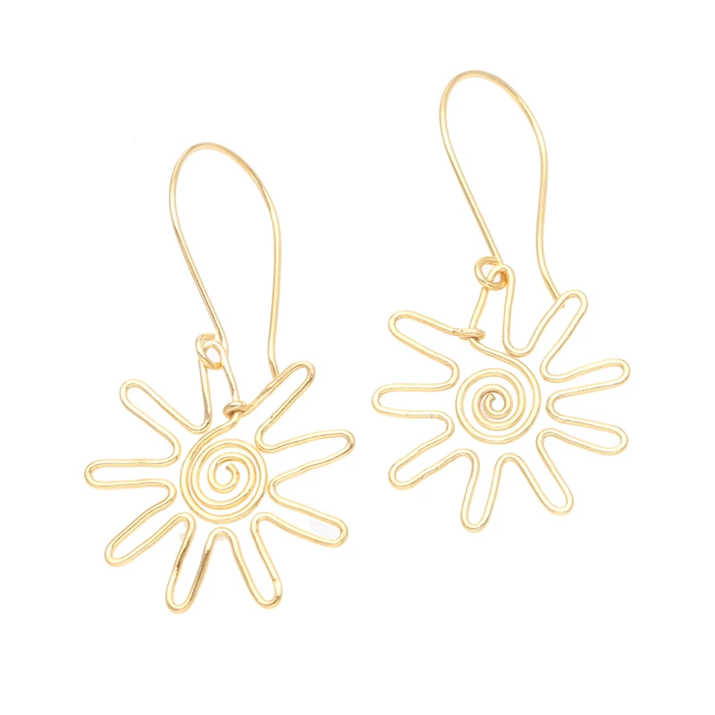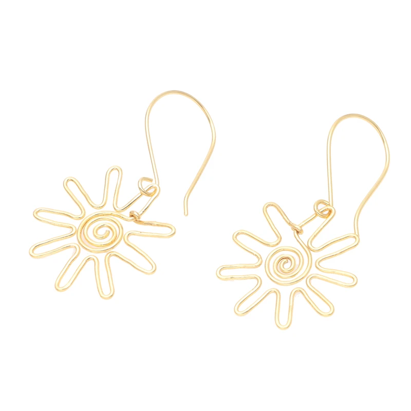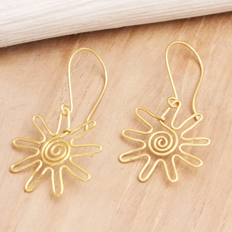 Glamorous and sophisticated, Wayan Karang's dangle earrings are carefully designed with shimmering gold. Balinese artisans use 22k gold-plated brass to hand craft the sun-shaped earrings.