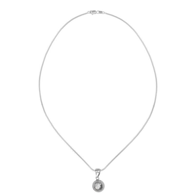 Guillermo Arregui creates this simple, yet elegant pendant necklace from Mexico. Featuring a handcrafted design from Taxco sterling silver, the surface of the pendant is textured, presenting a striking appearance.
