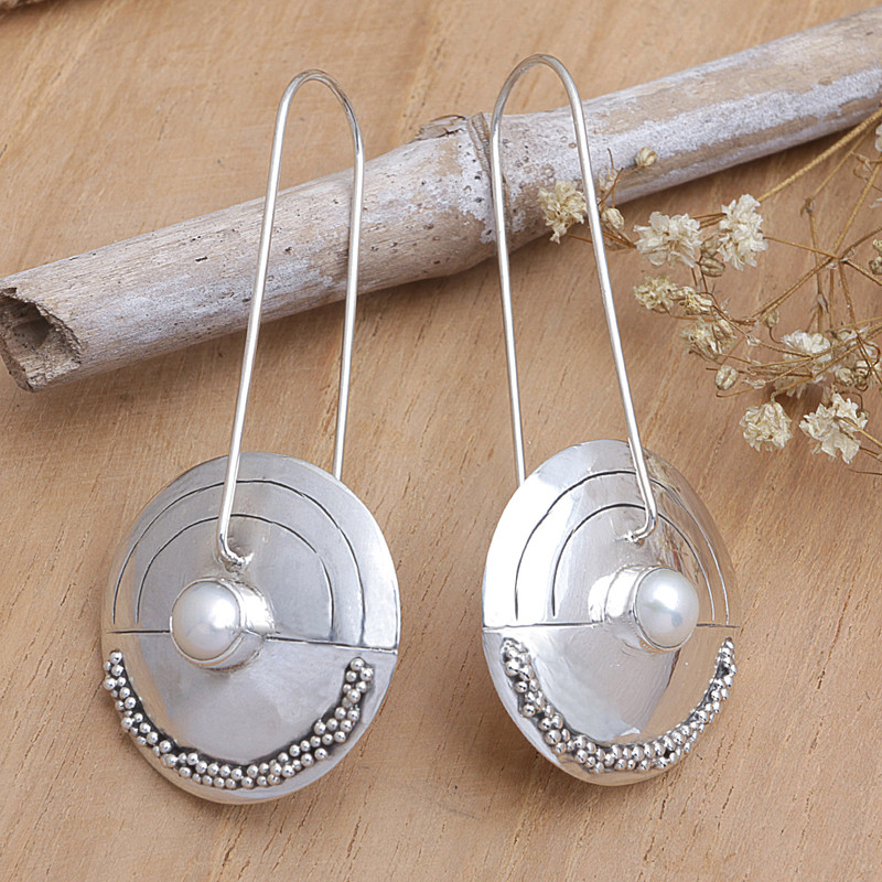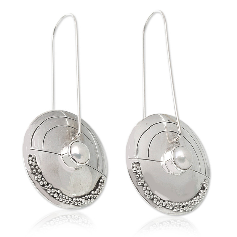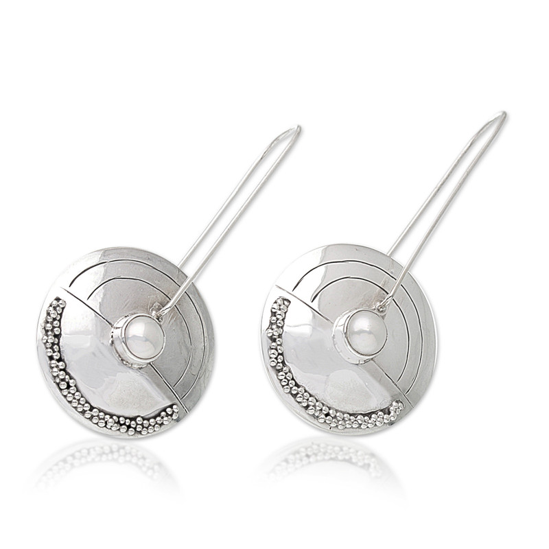 Backed by our 100% Happiness GuaranteePearly moonlight bathes sterling pebbles in a radiant glow. Modern and beautiful, these earrings come from Nyoman Rena. They are affixed to slender wires.